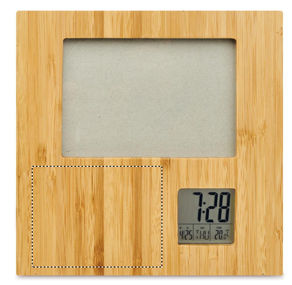 Bilderrahmen mit Tischuhr. Die Uhr zeigt Zeit, Datum und Temperatur an. Mit Alarmfunktion und Countdown-Timer. Exkl. 2 AAA-Batterien. Bambus ist ein natürliches Produkt, es kann daher zu leichten Abweichungen in Farbe, Dekor und Maßen kommen.