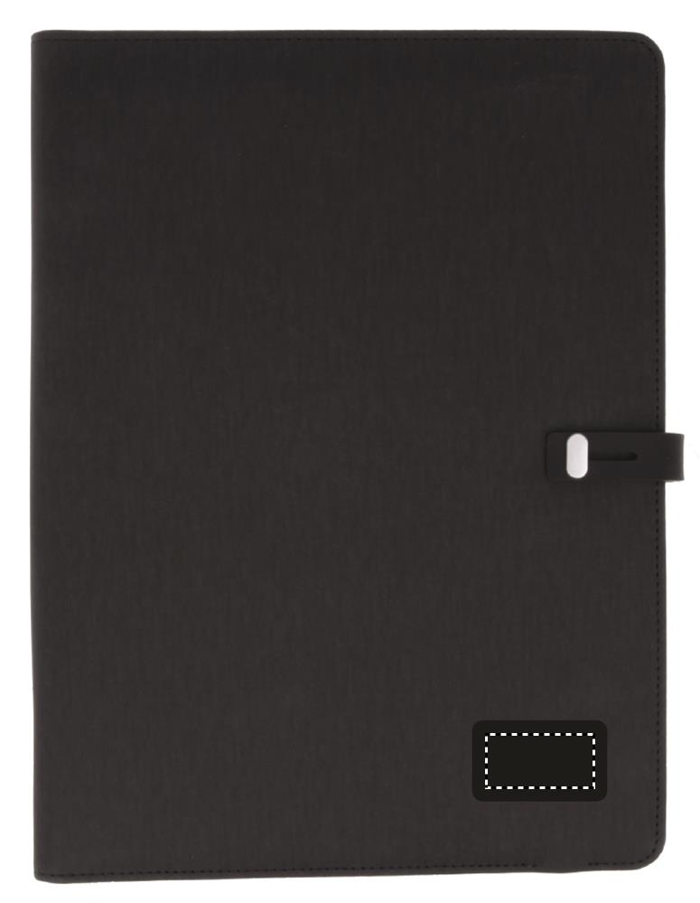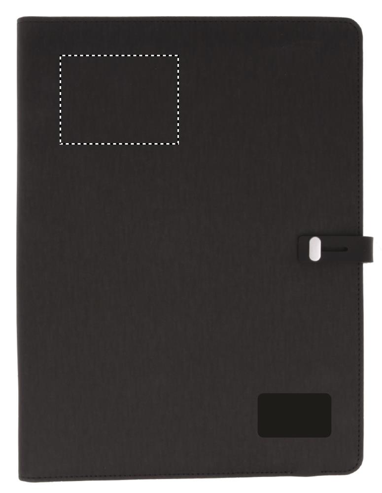 DIN A4 Portfolio mit Cover aus PU in Leinen-Optik. Magnetverschluss. Block mit 20 Blatt (40 Seiten) liniertem Papier. Inkl. 4000 mAh Powerbank und Mikro-USB-Kabel/Typ C. Smartphone- /Tablet Halterung. Kreditkarten Steckfächer. Stiftschlaufe. Mit schwarzer Aluminium Plakette für Ihr Logo.
