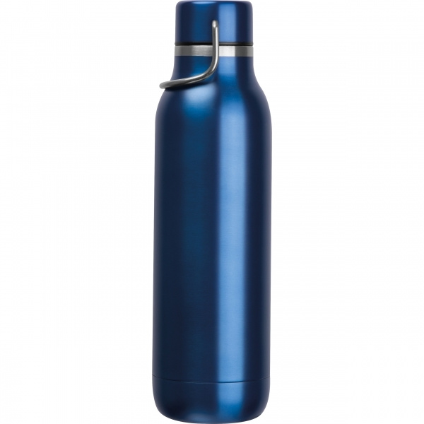 Doppelwandige Edelstahl-Trinkflasche mit Tragegriff am Deckel und einem Fassungsvermögen von 600 ml. Ihr Logo wird mittels Lasergravur auf die Flasche aufgebracht.