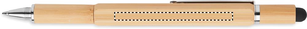 Drehkugelschreiber mit Stylus, aufgedrucktem Lineal (7cm) und Mini-Wasserwaage (Gimmick) sowie integriertem Kreuz- und Schlitzschraubenzieher. Bambus-Gehäuse. Blaue Tinte. Bambus ist ein natürliches Produkt, es kann daher zu leichten Abweichungen in Farbe, Dekor und Maßen kommen.