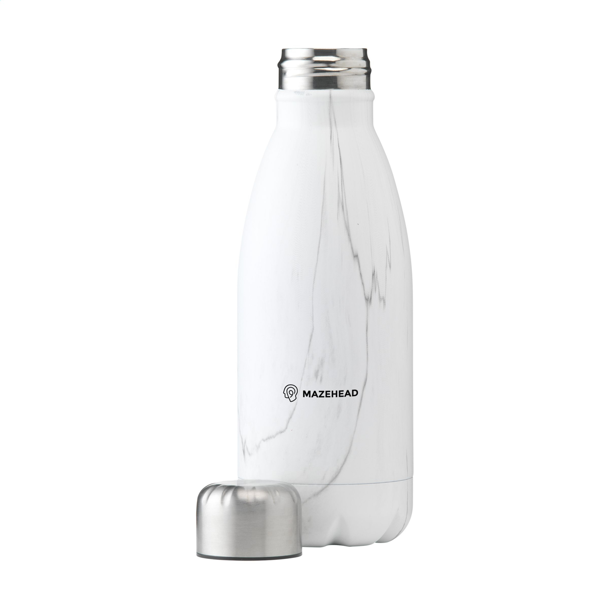 Doppelwandige, vakuumisolierte Edelstahl-Wasserflasche/Thermoflasche. Mit auslaufsicherem Schraubverschluss. Dieses elegante Modell hat eine auffällige, attraktive Oberschicht. Geeignet zum Warmhalten von kaltem oder heißem Wasser. Fassungsvermögen 350 ml. Jeder Artikel ist einzeln verpackt.
