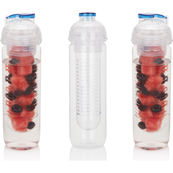 500ml Tritan Flasche mit Früchte-Aromafach. Bereichern Sie Ihr Wasser mit Vitaminen und einer Menge Geschmack durch das einfache Hinzufügen von frischen Früchten im Aromafach. Dieses Fach kann durch die Zugabe von Eiswürfeln auch als Kühlfach verwendet werden. Nur Handwäsche.