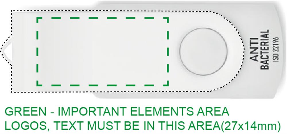 16GB Antibacterial USB 2.0 Flash Drive with protective metal cover. Rotate the cover and connect to USB port to start using it. Our USB prices do not include the € 0.50 home copy duty. Applicable for all USB deliveries in the Netherlands from 01-01-2021. ISO 22196.