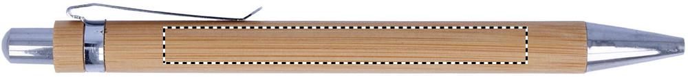 Push button ball pen in bamboo with shiny chrome fitting. Blue ink. Bamboo is a natural product, there may be slight variations in colour and size per item, which can affect the final decoration outcome.