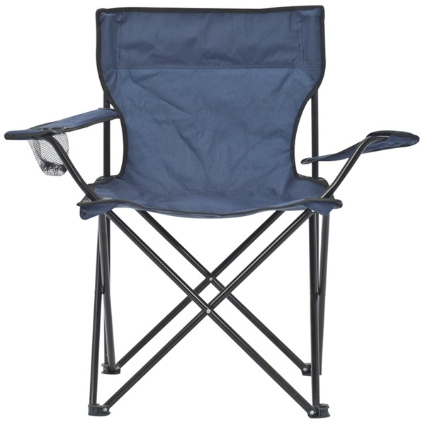 Foldable armchair with sturdy steel frame, high quality sturdy polyester cover, integrated drink holder, carrying bag and load capacity up to 100 KG. We print your logo on the carrying bag.