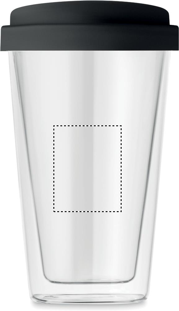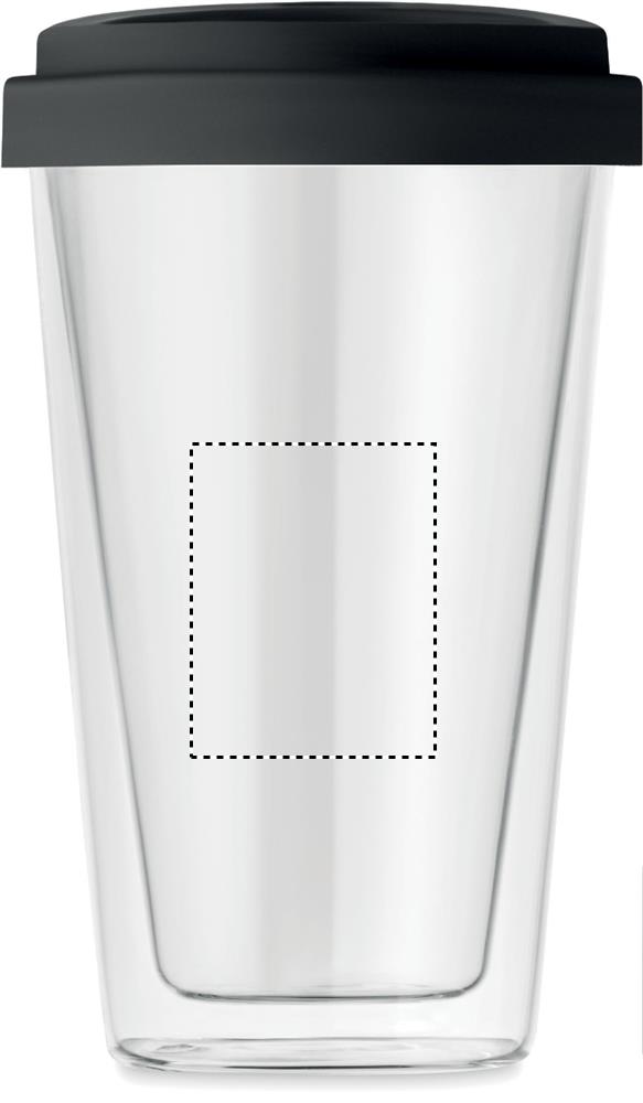 Double wall high borosilicate glass with silicone lid. Capacity 350ml