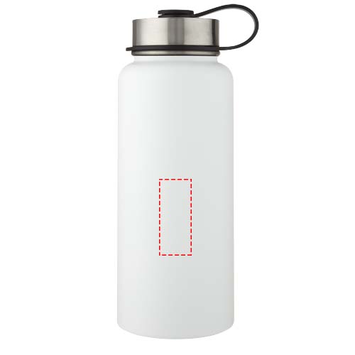 Two-in-one double-walled stainless steel sport bottle with copper vacuum insulation featuring 2 lids: one lid with a straw for easy drinking and one leakproof screw-on lid with handling loop. The insulated 18/8 stainless steel construction prevents condensation on the outside of the bottle, and the on-trend powder coating finish makes it extra durable. Wide opening mouth for easy filling, pouring and cleaning. BPA-free, tested and approved under German Food Safe Legislation (LFGB). Tested and approved for phthalates content according to REACH regulations. Perfect for ice cubes. Volume capacity is 1 litre. Hand wash recommended. Presented in a recycled cardboard gift box.