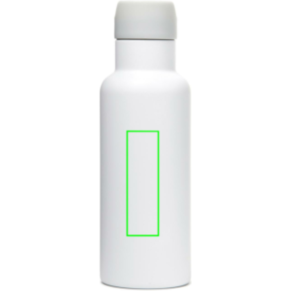 Practical and stylish water bottle with a tough, double wall. Vacuum sealed to keep drinks hot or cold for up to 6 hours. Enjoy your favourite cold drink while you're out and about or bring a warming cup of tea or coffee on your morning commute. Push-mug function. 500ml.