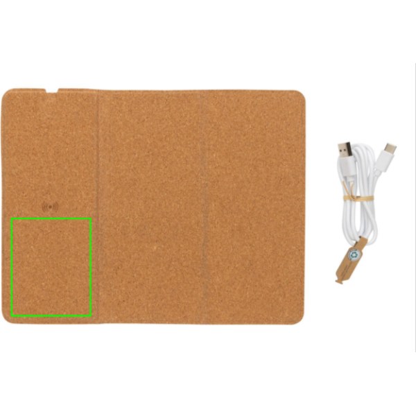 Logo trade firmakingi pilt: 10 W juhtmevaba laadimisega korgist hiirematt ja alus