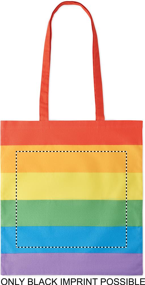 Pikkade sangadega vikerkaarepuuvillane ostukott. 200 gr/m².