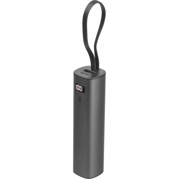 Alumiiniumist varupatarei 5000 mAh liitiumioonaku, laetuse taseme näidiku ja integreeritud USB-C laadimiskaabliga. Komplektis on 30 cm pikkune Type-A-C laadimiskaabel.