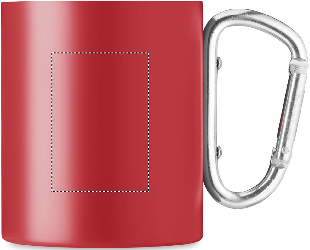 Kaheseinaline roostevabast terasest kruus, karabiiniga sangaga. Mahutavus: 300 ml.
