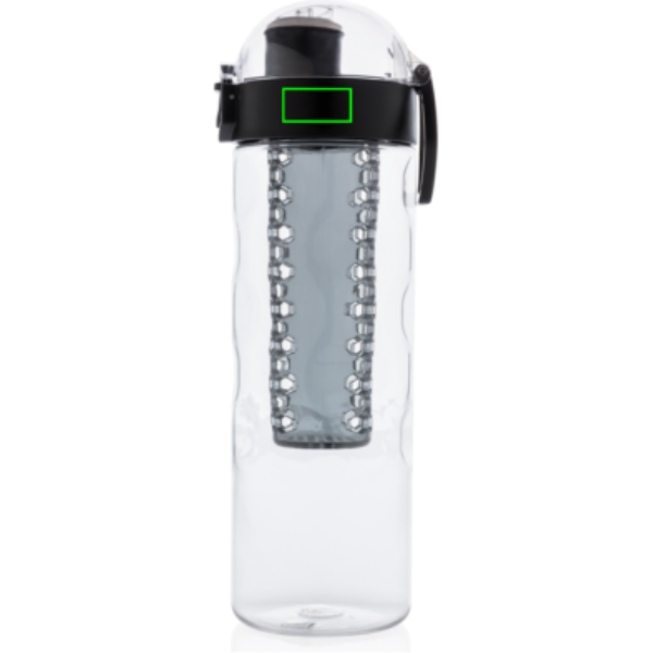 Lisage oma veele mõned tervislikud puuviljamaitsed. See kärgstruktuuri detailidega disainpudel pakub mugavat ühe käega joomist. Vajutage nuppu ja kaas avaneb. Seal on spetsiaalne lukustusmehhanism, mis takistab kasutajatel kogemata nuppu vajutamast. Kaasa arvatud kandesang. See infusioonipudel on valmistatud vastupidavast ja uuenduslikust tritaanmaterjalist. Lõhnatu ja 100% BPA-vaba. Sisu 700ml. Registreeritud disain®