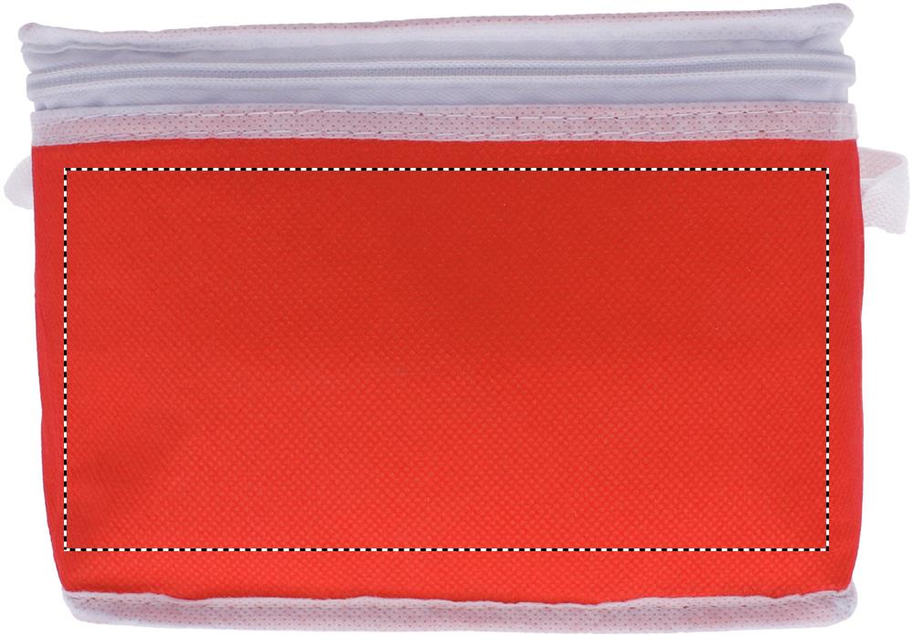 Külmekott 6 purgi jaoks. Väljast lausriidest valgete kaunistustega. 80 gr/m². Isolatsioonimaterjal: alumiiniumfooliumiga lamineeritud vaht. Mahutavus 3L.
