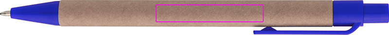 Taaskasutatud paberist ja värvilisest plastikust pastapliiats, sinine kiri. Teie logo on trükitud klipist paremale.