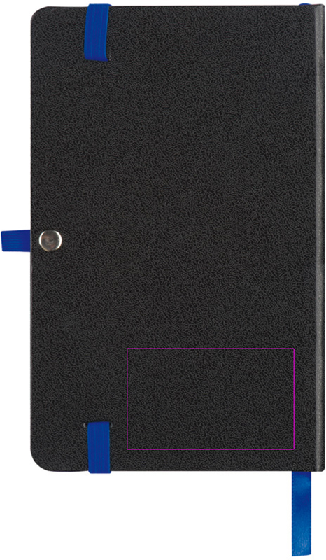 Musta PU kaanega märkmik ja 160 joonega lehte. Elegantne välimus läbi värviliste aktsentide. Trükime teie logo kaanele.