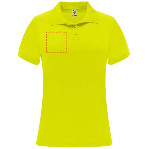 Lühikeste varrukatega tehniline polosärk naistele. Koo kolme nööbiga plekiga krae. Paigaldatud lõige. Hingav, kergesti pestav ja kuiv kangas. Eemaldatav etikett. Tehniline kangas. Hingav kangas. Modell on 173 cm pikk ja kannab suurust S.