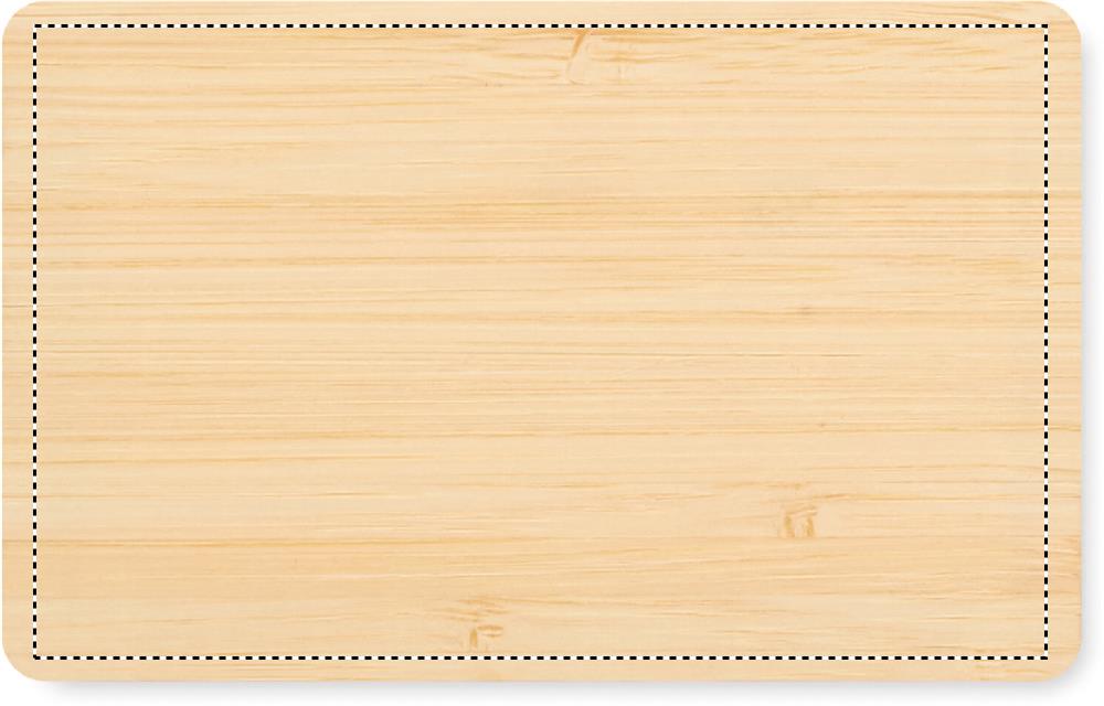 RFID koorimisvastane kaart bambusest ümbrises. Elektromagnetvälja abil muudab see kõik 13,56 MHz kaardid (rongid, bussid, panga- või krediitkaardid) turvaliseks elektroonilise tasku 2-3 cm ulatuses ümber kaardi. (1,3 mm). Bambus on looduslik toode, ühe eseme värvis ja suuruses võib esineda väikesi erinevusi, mis võivad mõjutada lõppviimistlust.