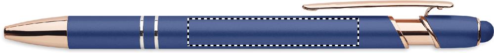Taaskasutatud alumiiniumist tõukepliiats roosa kuldsete detailidega. Sinine tint.