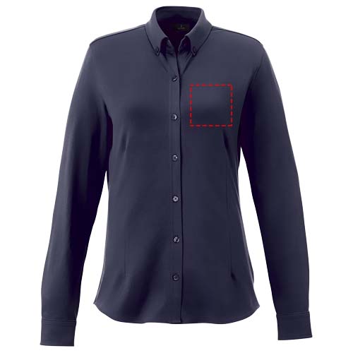 Self-fabric collar. Joustava kangas. Säädettävä hihansuu laskoksella. Napitettava kaulus. Muotoillut saumat ja kapeneva vyötärö hyvän istuvuuden takaamiseksi. Satiinitere niskan sisäpuolella . Kaiverretut napit sävy sävyyn. Kudottu merkki..