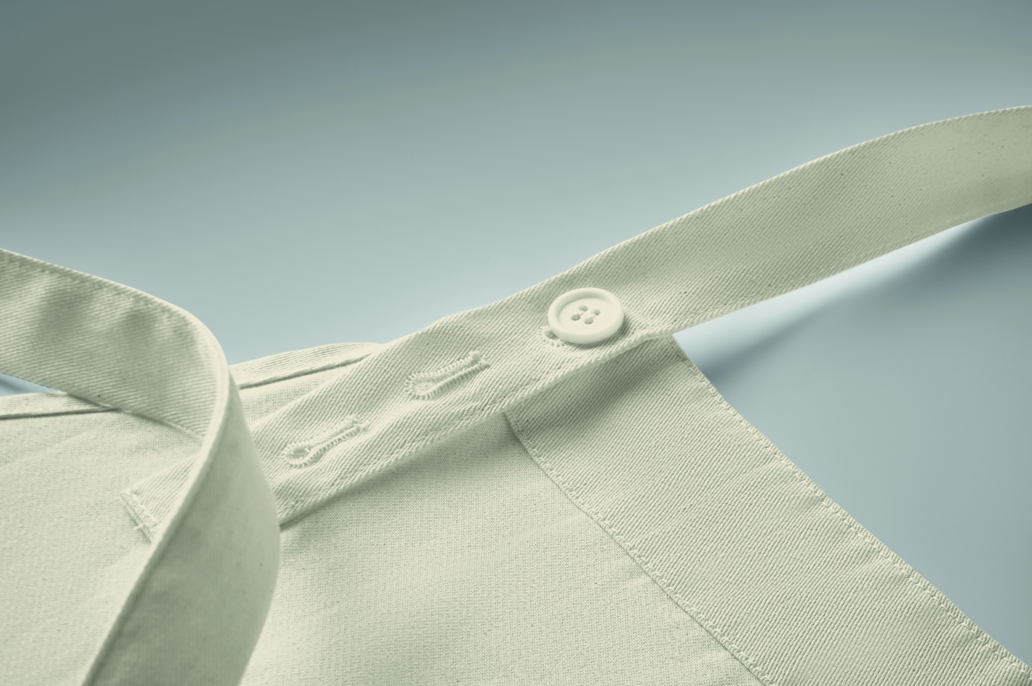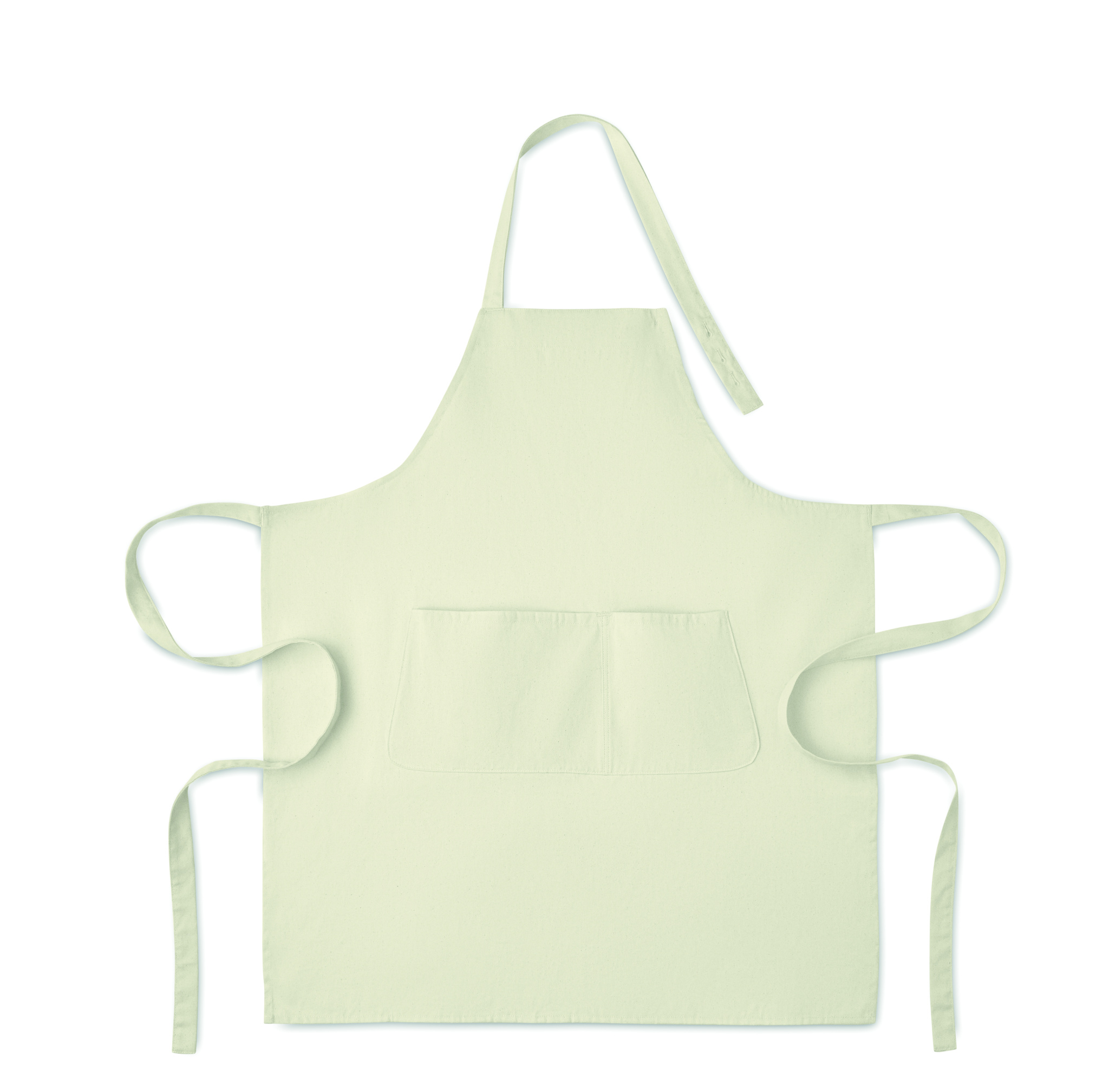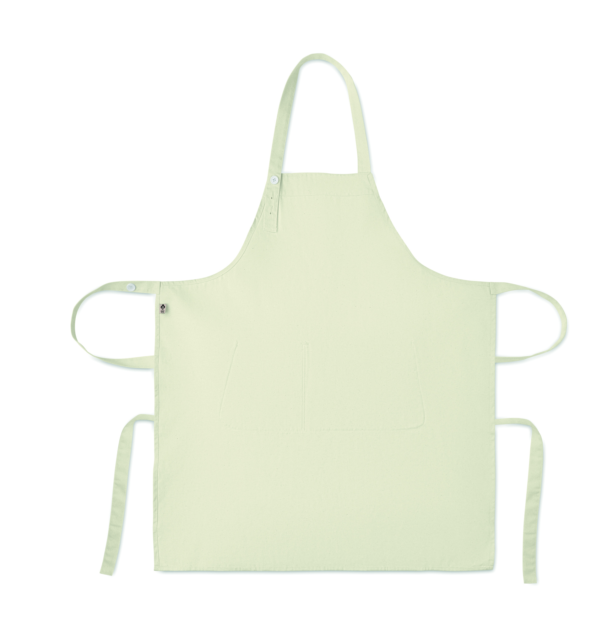 Säädettävä esiliina, jossa yksi suuri etutasku ja kaksi lokeroa. Valmistettu 240 g/m² luomupuuvillasta. Kaulanauhassa säädettävä nappi. Tämä tuote on OEKO-TEX® STANDARD 100 -sertifioitu.