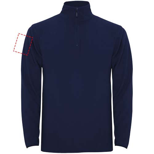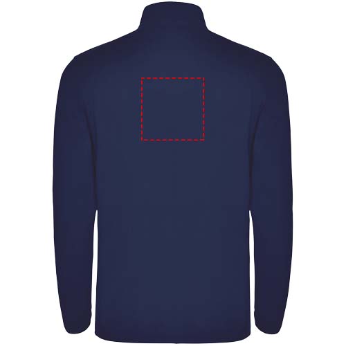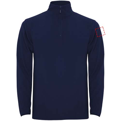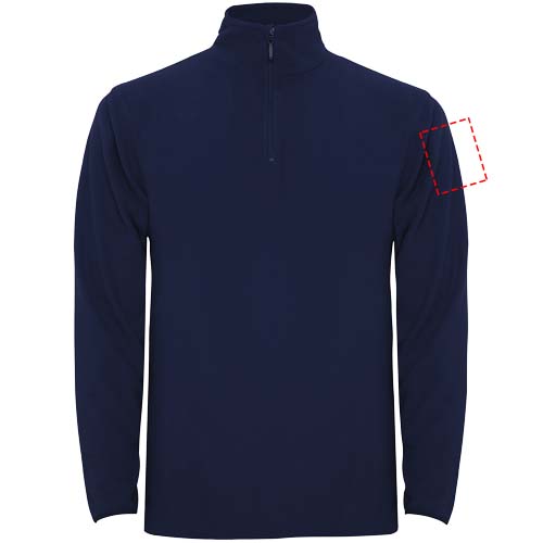 Mikrofleece, jossa puolivetoketju pääntiessä ja leukaa suojaava osa. Hihansuissa saman sävyinen joustava reunus. Irrotettava tuotemerkki. Kuvan malli on 190 cm pitkä ja hänellä on päällään koko L.