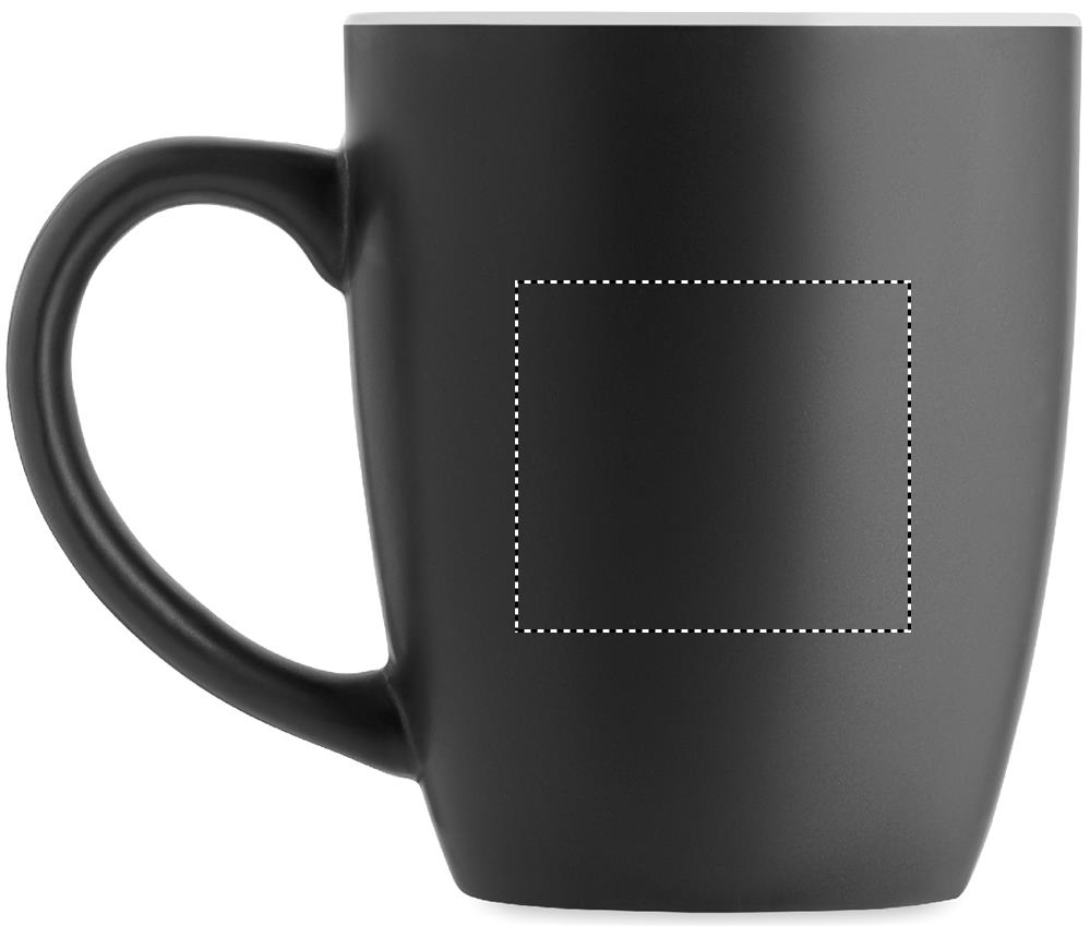Musta mattapintainen keraaminen muki, jossa kiiltävä värillinen sisäpuoli. Tilavuus 290 ml.