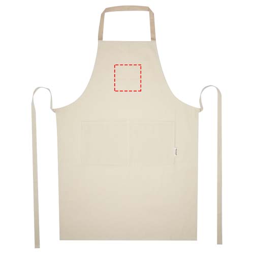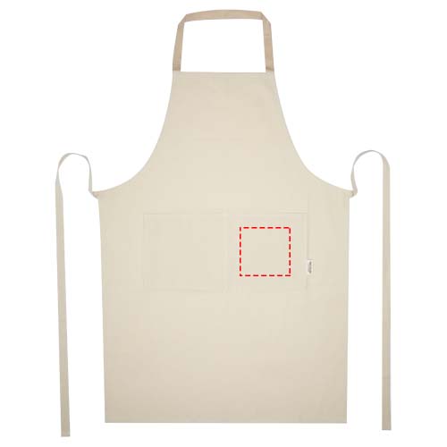 Nia esiliina on valmistettu 100-prosenttisesti GRS-sertifioidusta 200 g/m²:n kierrätetystä puuvillasta. Esiliina on luonnollisen puuvillan värinen, siinä on kontrastivärinen niskalenkki ja se suojaa vaatteita ruoanlaiton aikana. Käytännöllisessä ja tyylikkäässä Nia esiliinassa on kaksi vierekkäistä taskua, joiden yhdistetty koko on 45 x 20 cm, sekä 1 metrin pituiset taakse sidottavat kiinnitysnauhat.