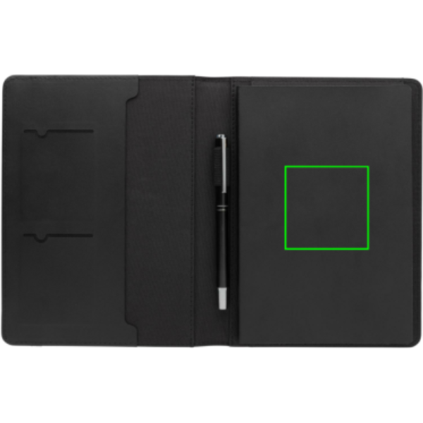 Kierrätyspolyesteristä ja RCS-sertifioidusta kierrätetystä PU:sta valmistettu portfolio yhdistää tyylin ja vähäiset ympäristövaikutukset. Kolme korttilokeroa, kynälenkki ja tilava A5-dokumenttitasku. Uudelleentäytettävä A5 muistikirja, joka on valmistettu FSC®-mix kermanvärisestä 80 g/m² paperista. Valitse tyylikäs vihko hyvällä omatunnolla. Valmistettu 100% kierrätetystä polyesteristä, johon on upotettu AWARE™-jäljitysainetta. Pakattu FSC®-lahjapakkaukseen.