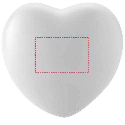 Sydämen muotoinen stressilelu. Stressilelujen tiiviys, väri, koko ja paino vaihtelee muokkausprosessissa, minkä vuoksi tarkka ja yhtenäinen painatus ei aina onnistu. Painatus voi hajota. Ei häivytettyjä sävyjä. PU Plastic foam.