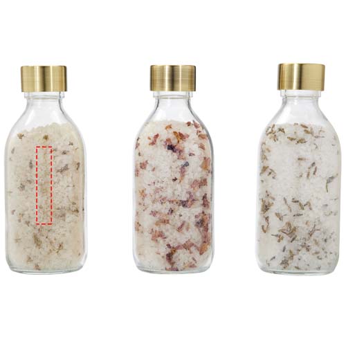 Lahjasetti "Just Relax" sisältää 3 x 200 ml Kuolleenmeren kylpysuolaa kirkkaassa lasipullossa, jossa on messinginvärinen teräskorkki. Jokaisessa pullossa on erilainen tuoksu: Ruusu, laventeli ja kamomilla. Eikö kotona ole kylpyammetta? Kylpysuolaa voidaan käyttää myös väsyneiden jalkojen virkistämiseen ja rentouttamiseen. Täydellinen lahja jokaiseen tilaisuuteen. Valmistettu Alankomaissa.