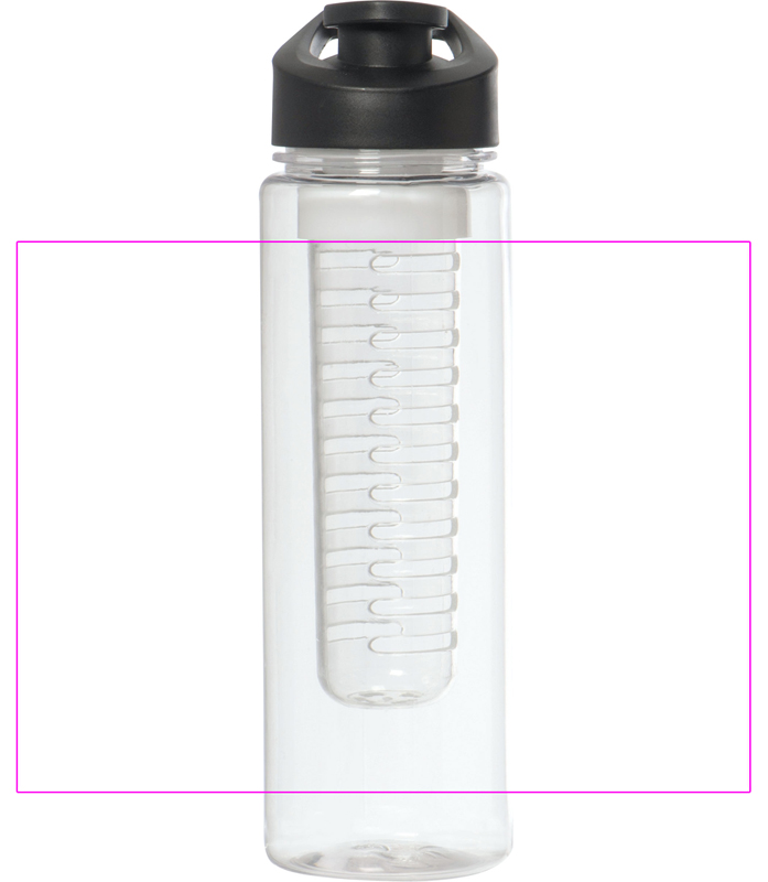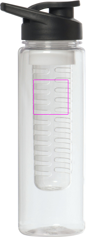 Didelis, nepralaidus gėrimo butelis BE BPA (talpa 700 ml) su išimamu vaisių įdėklu. Dangtelyje yra didelė gėrimo anga su uždarymu ir integruota rankena. Ant butelio atspausdiname Jūsų logotipą.