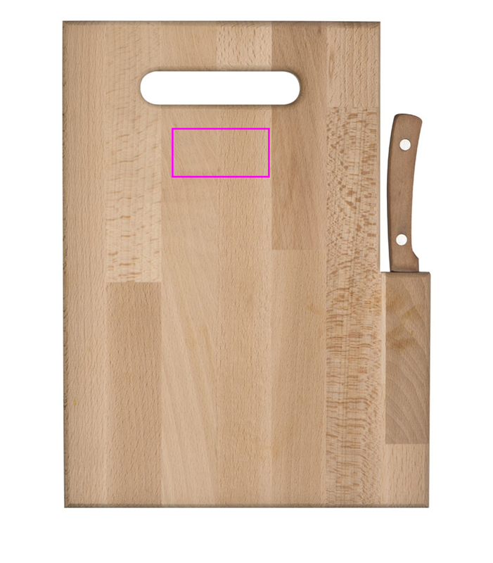 Puikus duetas! Medinė lenta pagaminta iš buko su integruotu peiliu. Lazeriniu graviravimu ant lentos pritvirtiname Jūsų logotipą.