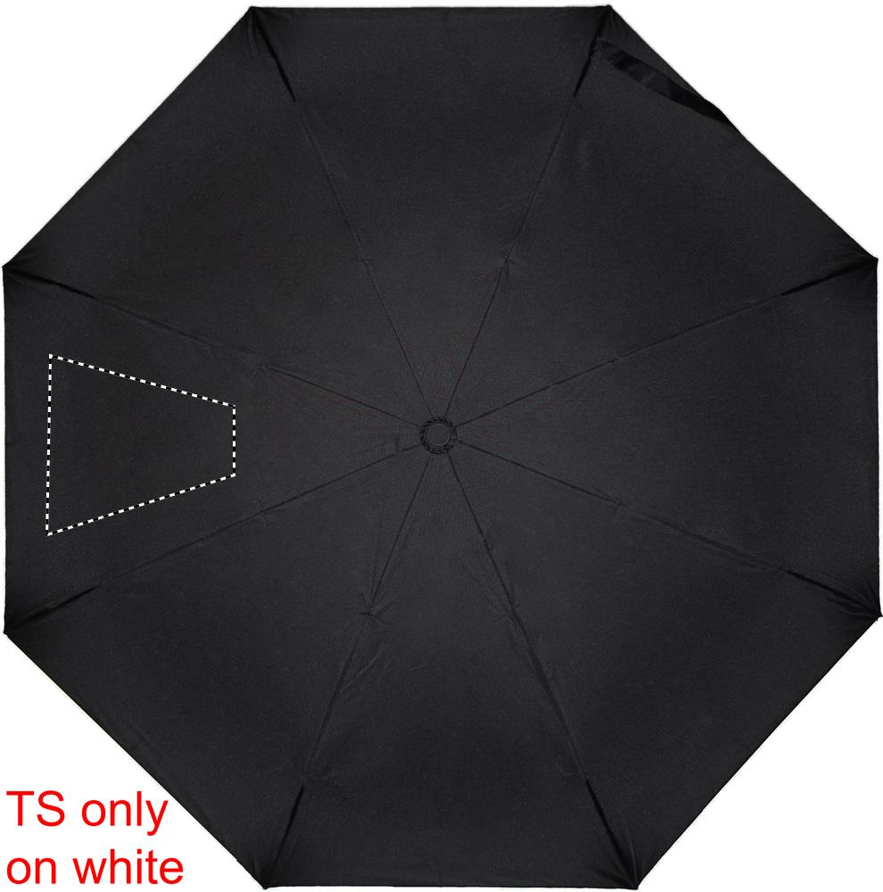 21 colio Luxe 3 kartus sulankstomas automatinis vėjui atsparus skėtis 190T pongee su cinkuotu plieniniu kotu, juodais briaunomis su 2 dalių stiklo pluošto ir chromuoto metalo antgaliais, juoda gumuota rankena su kupolu. Pridedamas atitinkamas maišelis. Automatinis uždarymas.