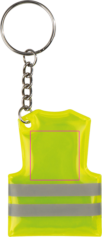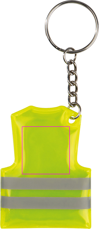 Atslēgu piekariņš drošības vestes formā ar atstarojošām svītrām. Mēs drukājam jūsu logotipu virs svītrām.