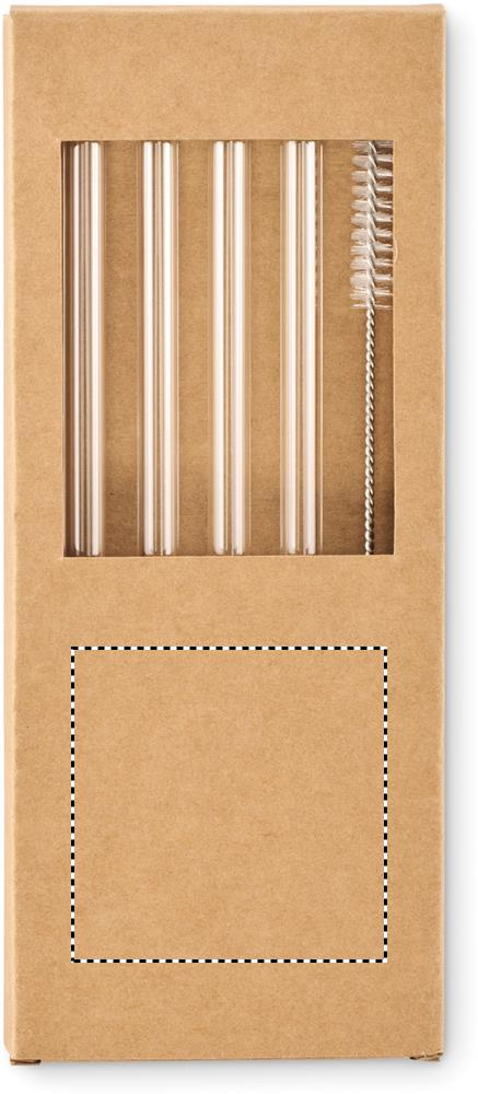 Pack of 4 reusable straws in high borosilicate glass with 1 cleaning brush.