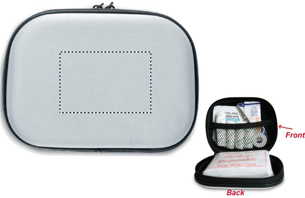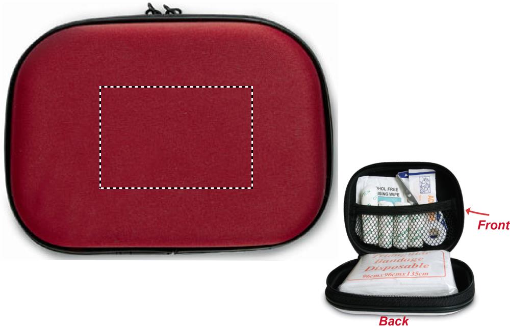 Аптечка. Включает ножницы, 3 марлевых тампона ,1 бинт, рулон ваты, 2 дезинфицирующие салфетки, 5 пластырей, жгут и 6 ватных дисков