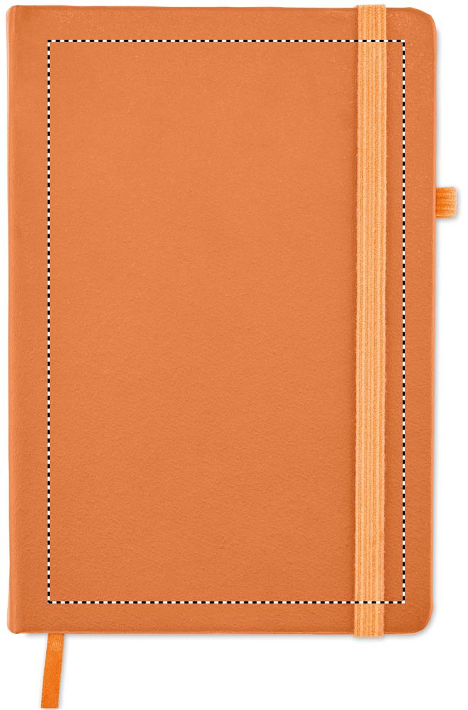 Блокнот формата A5 с обложкой из переработанного полиуретана. Переплет. 192 линованные страницы из переработанной бумаги (96 листов). Эластичный ремешок и крепление для маркеров и ручек.