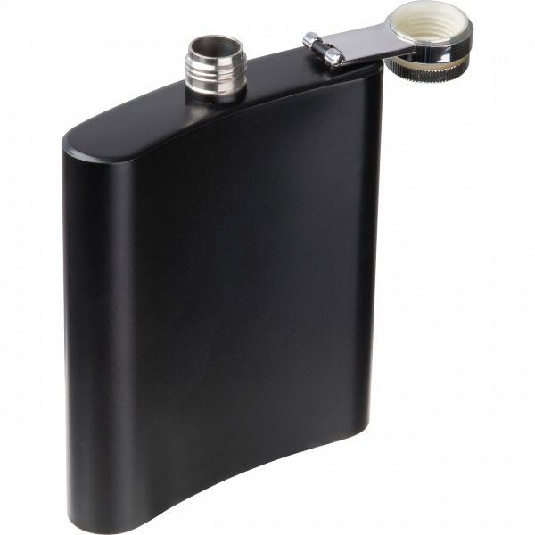 Элегантная фляжка из нержавеющей стали с матово-черным дизайном и емкостью 207 мл. Идеально подходит для использования на ходу или в качестве стильного подарка.