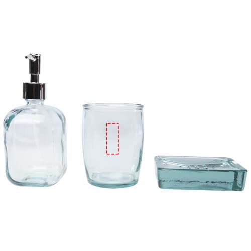Набор для ванной из 3 предметов из 100% переработанного стекла, в который входят: дозатор для мыла (450 мл), стакан (430 мл) и мыльница (13 x 10 см). На изготовление переработанного стекла затрачивается меньше энергии, сырья и добавок, чем на изготовление традиционного стекла. Можно мыть в посудомоечной машине.