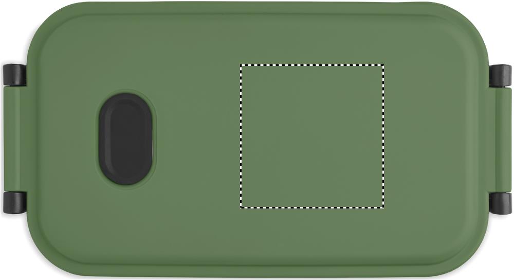 Ланч-бокс из переработанного полипропилена с герметичной крышкой, силиконовым клапаном и двумя боковыми застежками. Вместимость: 800 мл.