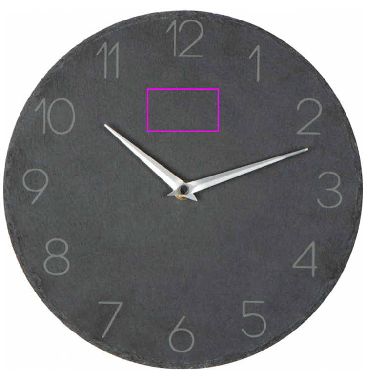 Элегантные настенные часы из сланца (натурального камня) с серебряными стрелками. Эти часы будут привлекать внимание в каждой комнате! Ваш логотип будет выгравирован на часах.