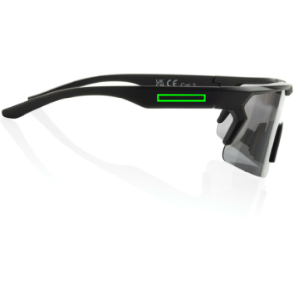 Поляризованные солнцезащитные очки спортивного дизайна с сертифицированной RCS оправой из переработанного поликарбоната. Общее содержание переработанных материалов: 65% от общего веса изделия. Сертификация RCS гарантирует полностью сертифицированную цепочку поставок переработанных материалов. Включая переработанный чехол RPET для хранения очков. Линзы поляризованные, что исключает отражение солнечного света, что делает их идеальными для занятий спортом и активного отдыха. Соответствуют EN ISO 12312-1, UV 400 и CAT 3. Упакованы в подарочную упаковку FSC®.