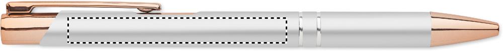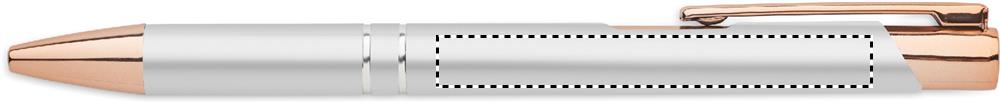 Кнопочная шариковая ручка из переработанного алюминия с деталями из розового золота. Синие чернила.