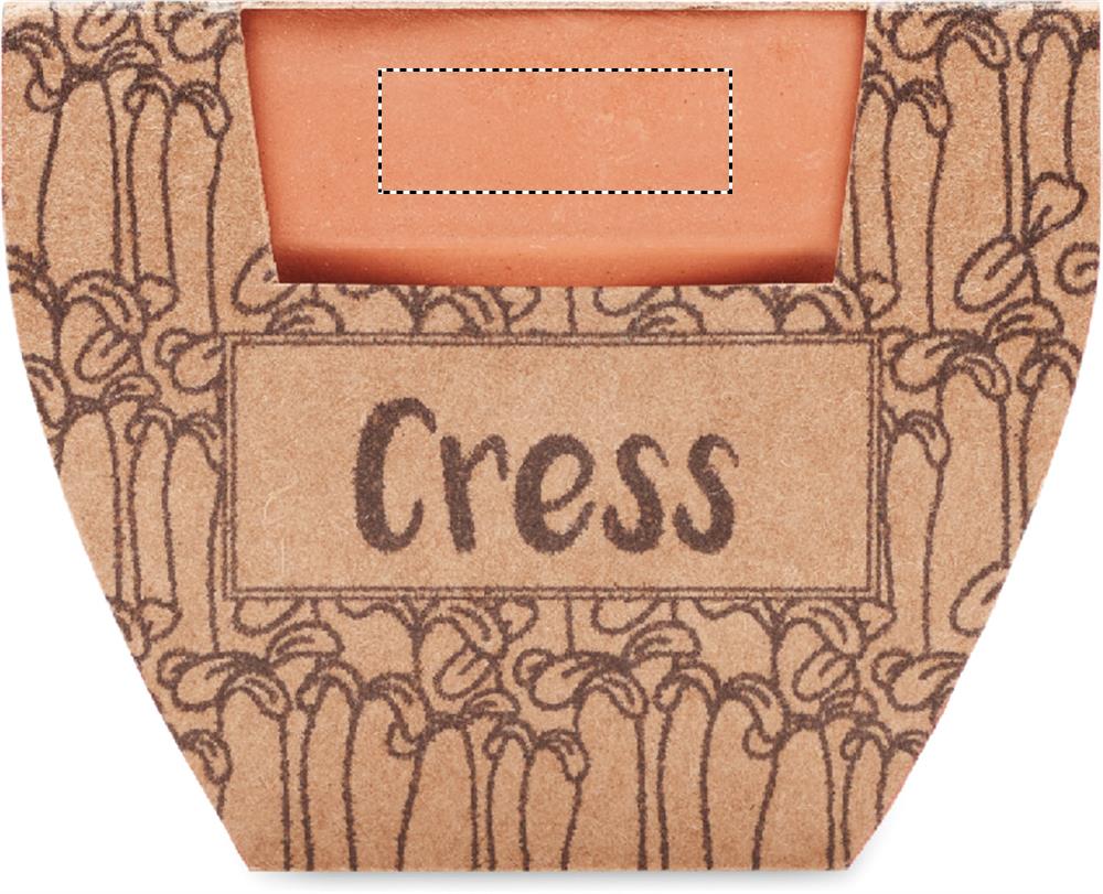 Небольшой глиняный терракотовый горшок с семенами салата и землей для проращивания. Изготовлено в ЕС.
