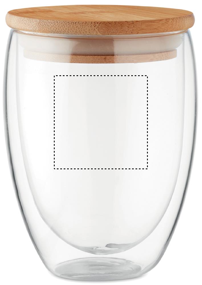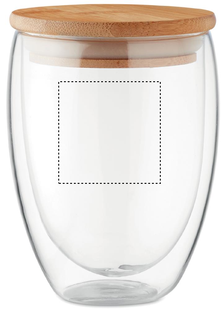 Стакан двустенчатый из боросиликатного стекла с бамбуковой крышкой и силиконовой прокладкой. Емкость 350 мл.