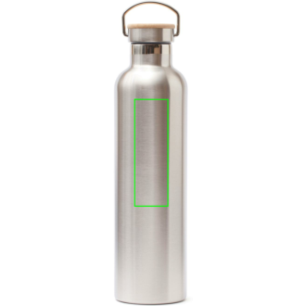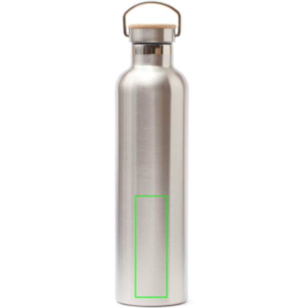 Термобутылка Miles имеет интеллектуальную вакуумную изоляцию, которая сохраняет воду холодной до 18 часов и горячей до 6 часов. Бутылка изготовлена из стали 18/8, а крышка имеет вешалку и деревянную отделку. Это способствует предотвращению использования одноразового пластика. Содержимое 1 л.