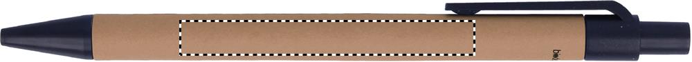 Återvunnet anteckningsbok med svart omslag. 70 blanka sidor av återvunnet papper och en biologiskt nedbrytbar återvunnen penna. Blått bläck.