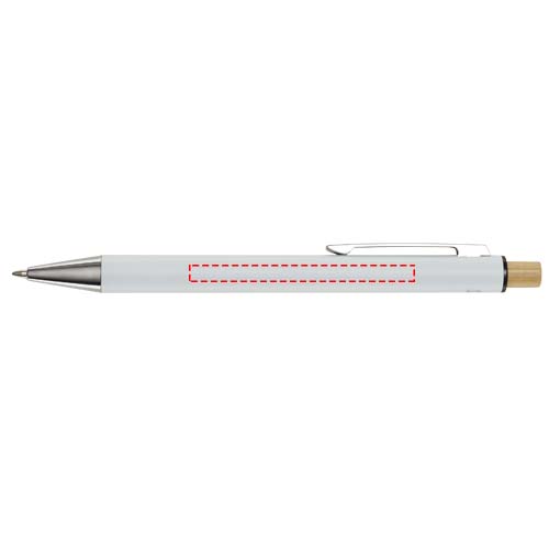 Kulspetspennan Cyrus är tillverkad av återvunnen aluminium, vilket kräver mindre energi än att tillverka aluminium från råmaterial. Den minskar också mängden avfall och bidrar till att bevara naturresurser med syftet att minska växthusgasutsläppen. Tryckknappen är tillverkad av bambu. Bläckfärg: Blå. Skrivlängd: 800 meter. Spetsstorlek: 1,00 mm.