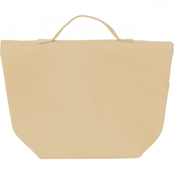 Kylväska tillverkad av återvunnen bomull och återvunnen polyester. Väskan har ett bärhandtag, ett brett kardborreknäppning och en framficka. Din logotyp är tryckt på framfickan.